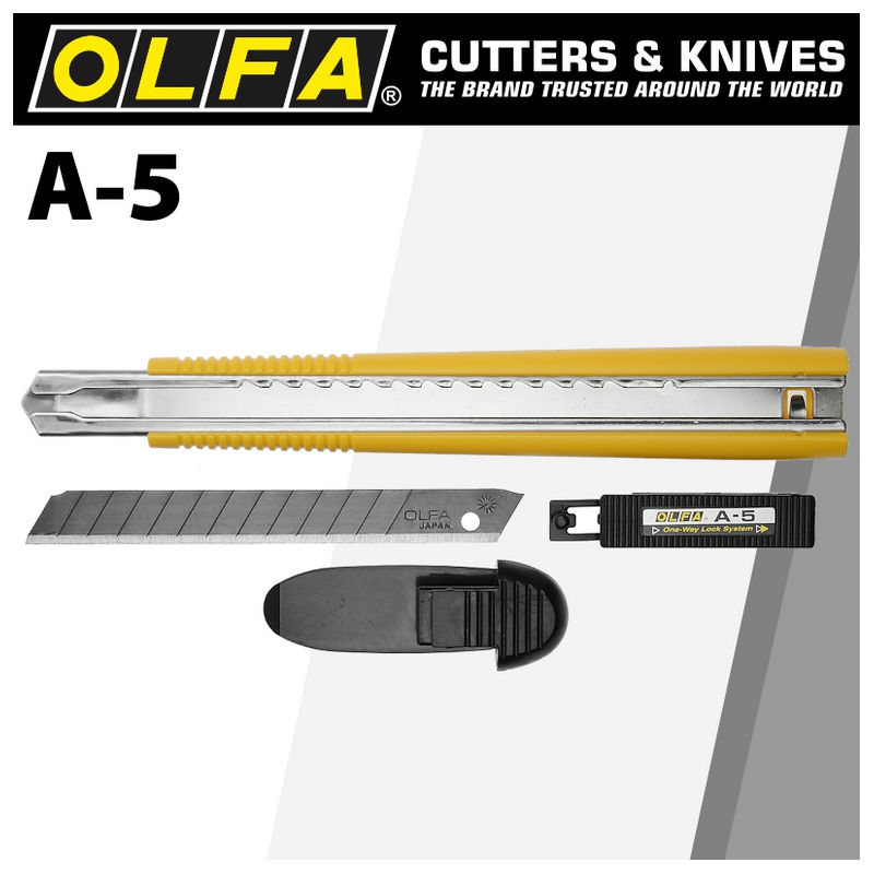 The A-5 makes cutting safer with a revolutionary One-Way Blade Locking system, which firmly locks the blade in place for pulling in one-direction only.
