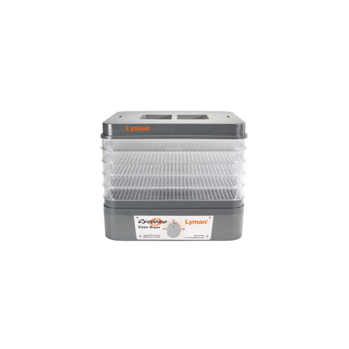 The perfect companion to any Ultrasonic or Rotary cleaning system. No longer will it be necessary to have to wait days for your brass to air dry! The forced heated air circulation of the Cyclone will dry your brass inside and out within an hour or two, with no unsightly water spots. The individual trays can keep your different caliber cases separate. Additionally, the dryer can also be used for gun parts that have been ultrasonically cleaned.