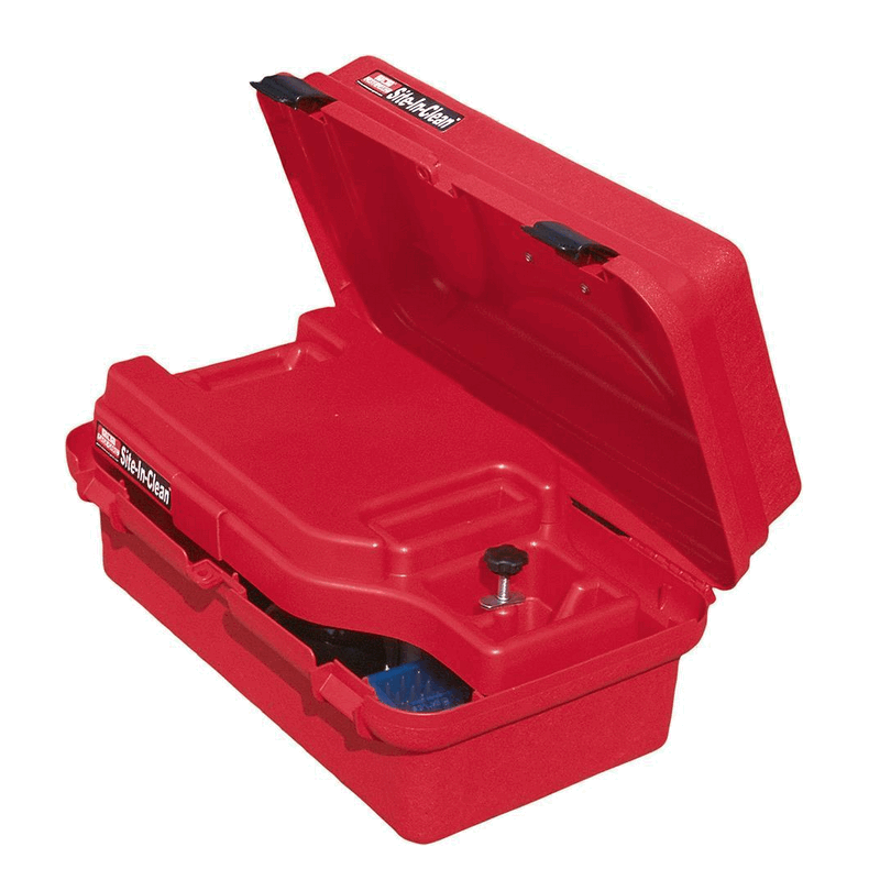 Great for sighting in rifles and shotguns. The rear fork of the Site-In-Clean Rest can be removed for fast shooting. Varmint hunters like having this option. Rubber over-molded, padded forks are adjusted and held in place by using two of four slots located in the base of rest. Rear adjustment knob allows for precise horizontal positioning. Guns are gripped for quick and easy shooting or cleaning. The rest comes with it's own custom sized field box. The rest conveniently stores as a tray in the top of the case leaving plenty of room below for ammo, safety glasses or cleaning equipment.