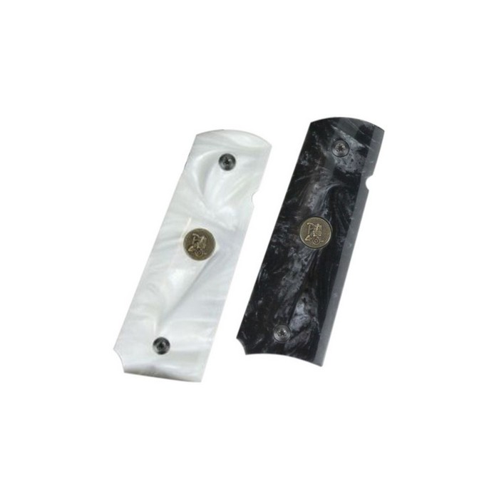 Pachmayr’s Brilliant Pearl grips add the ultimate custom look to your 1911. Our Brilliant Pearl grips replicate the appearance and feel of actual mother of pearl but at a much lower cost. Brilliant Pearl grips are strong and weather- resistant, as well as offering a smooth gripping surface which will not snag on clothing for concealed carry. Brilliant Pearl grips are available in both Black and White colors and have a recess cut for 1911’s with ambidextrous safeties.