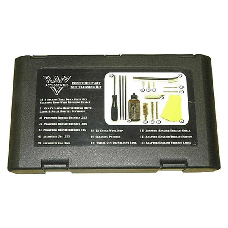 • Kit includes: 1 x 4 Piece Take Down Steel Gun Cleaning Rod with Rotating Handle, 1 x Gun Cleaning Brush, 9mm, .223 and 12ga Phosphor Bronze Brushes