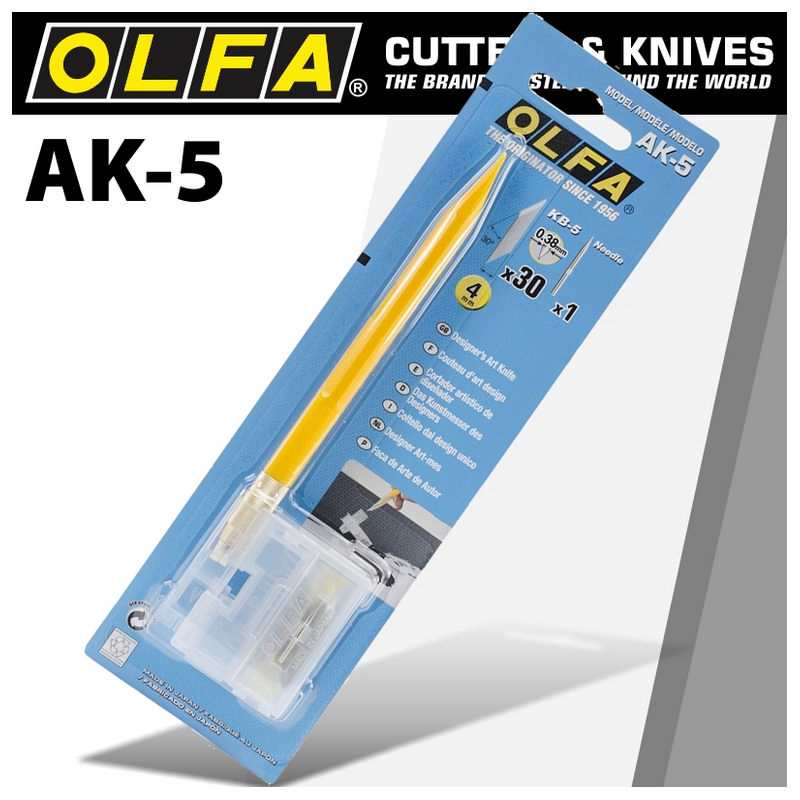 This designers Art cutter with a spatula edge package includes 30 blades and a needle. The square-shaped spare blade case works as a stand when connected to the blade cover. The additional needles can be used for plastic modelling and peeling labels. The come in handy spatula at the top end smooths adhesive materials and moulds clay.