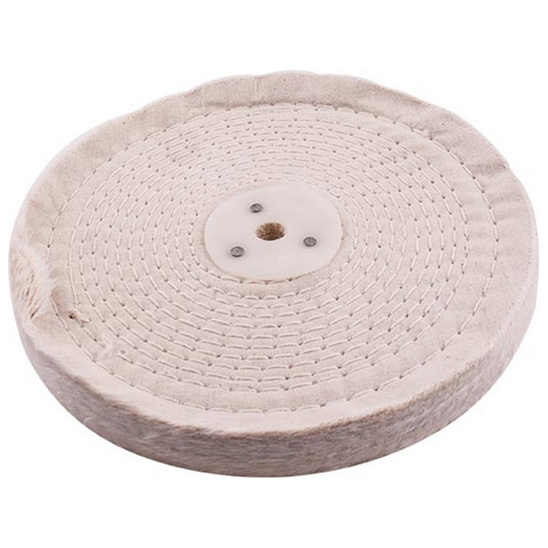 An unstitched buff is used with polishing (finishing) compound on metals. Each fold/leaf of material is approximately 1mm thick.