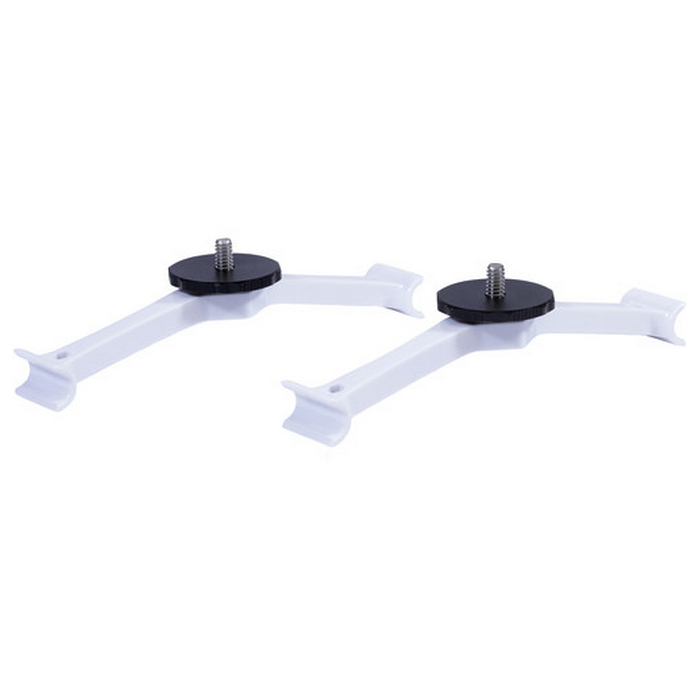 These white Mounting Brackets for DJI Phantom 4 Quadcopter from Lume Cube enable you to quickly attach a pair of Lume Cube lights to your drone. Attach each mount to a Lume Cube light (not included) using the mount's 1/4"-20 screw; then snap the mount onto one of the drone legs. A thumbwheel on the mount can be used to angle the horizontal position of the light.