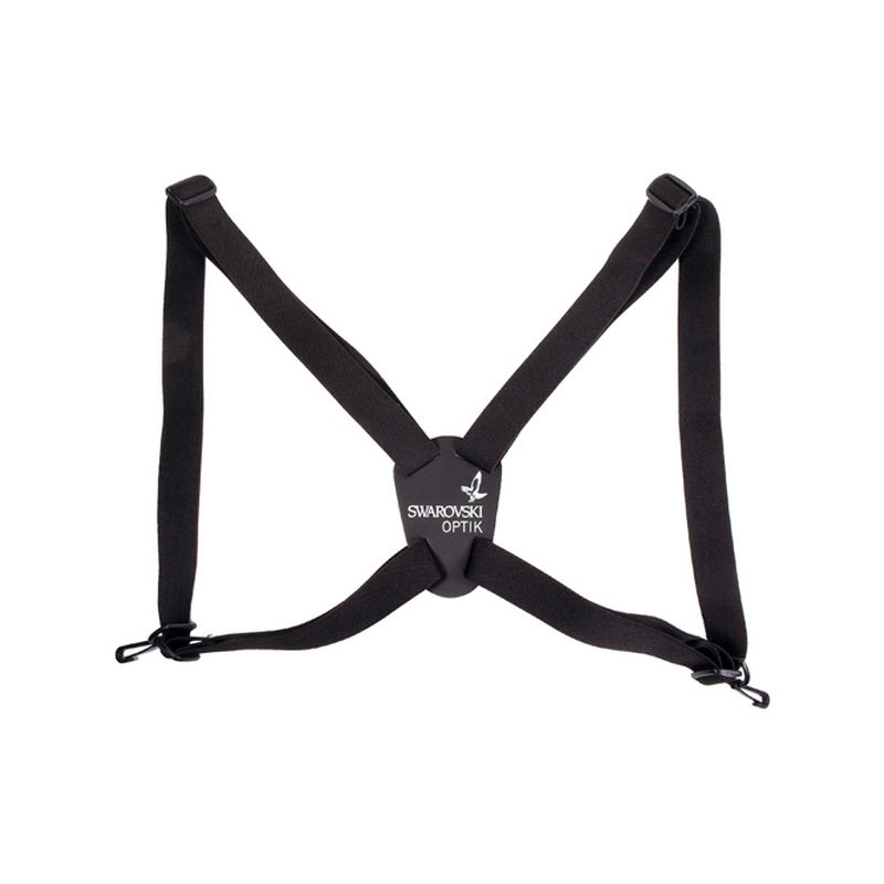 The Bino Suspender Harness Strap from Swarovski greatly distributes a binocular's weight across your back and shoulders, as well as keeping them close to your body to prevent swinging around. It is greatly recommended for using binoculars during activities where you'll be moving around quite a bit, though you'd never want to be galloping upon a horse with such a contraption.