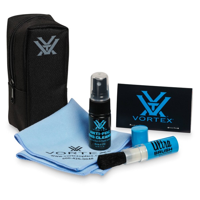 Vortex Fog Free Lens Cleaning Field Kit has everything you need to keep your outdoor optics spotless and free of condensation. This kit can be used to clean riflescopes, binoculars, sunglasses, eyeslasses and spotting scopes.