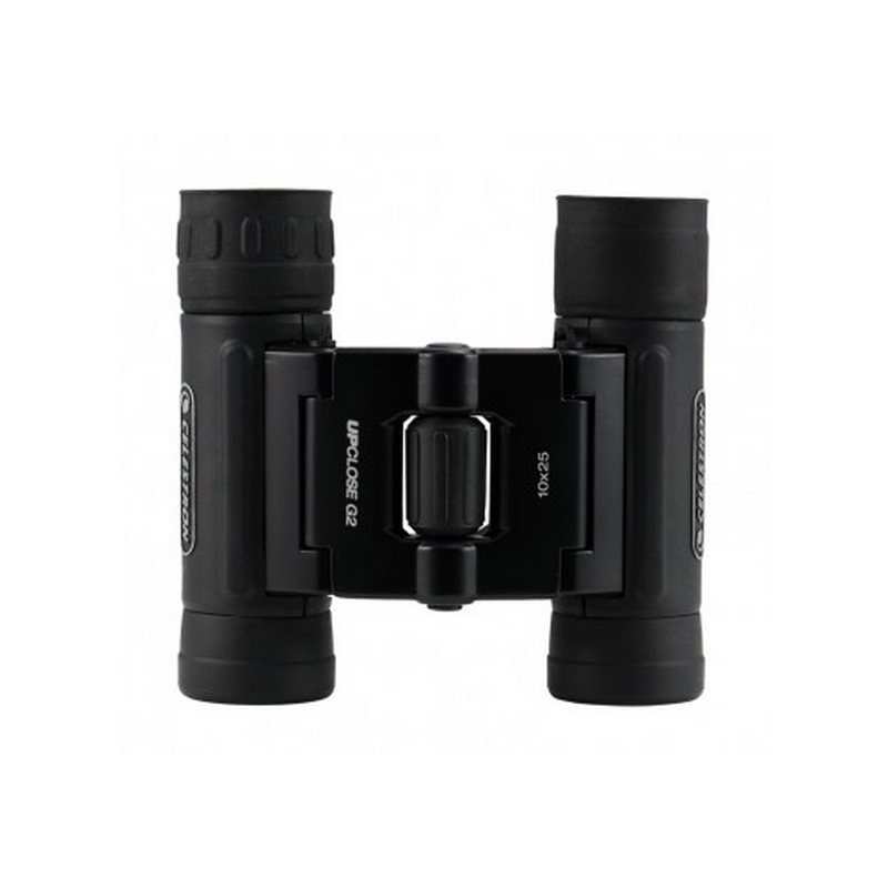 The UpClose G2 10x25 Roof Binocular from Celestron offers the slightly higher magnification of 10 power and the light transmission ability of 25 millimeter objectives. This makes for a lightweight binocular of only 11 ounces with a still very manageable size of 4½ inches without losing the extra up-close ability. The near focus is a practical 15 feet, allowing quick detailed views of that unexpected visitation. A water resistant, stylish, rubber covered, aluminum housing puts strength and protection of the optic as a prime priority. Thumb indents and finger ridges secure the grip when the last thing wanted is a dropped binocular. Drop it in the back pack, carry bag or coat pocket, but don't leave home without it.