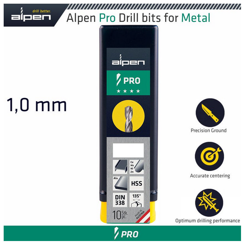 Alpen Pro 1.0mm HSS Drill Din 338 Rn 135