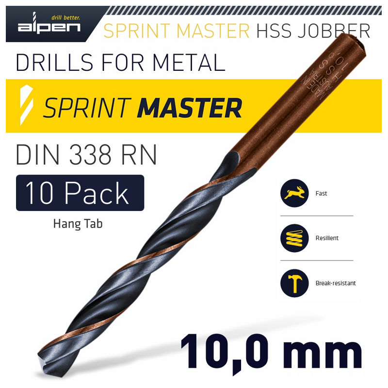 Alpen Sprint Master 10.0mm Hang Tab Din 10pack Din 338