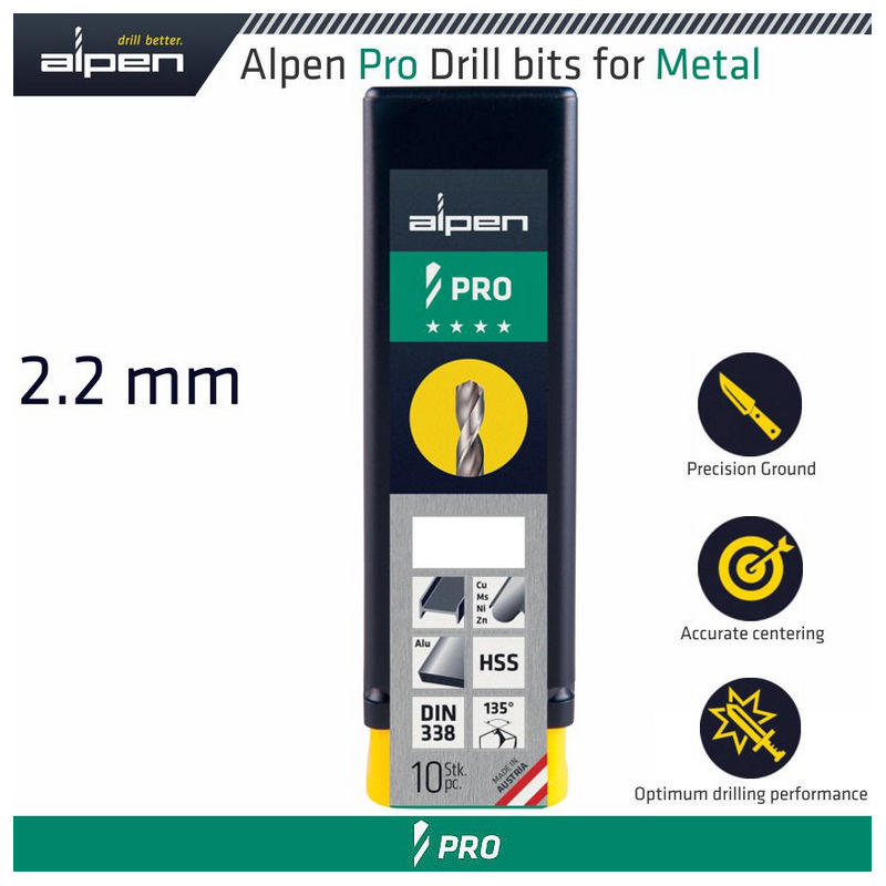Alpen Pro 2.2mm HSS Drill Din 338 Rn 135