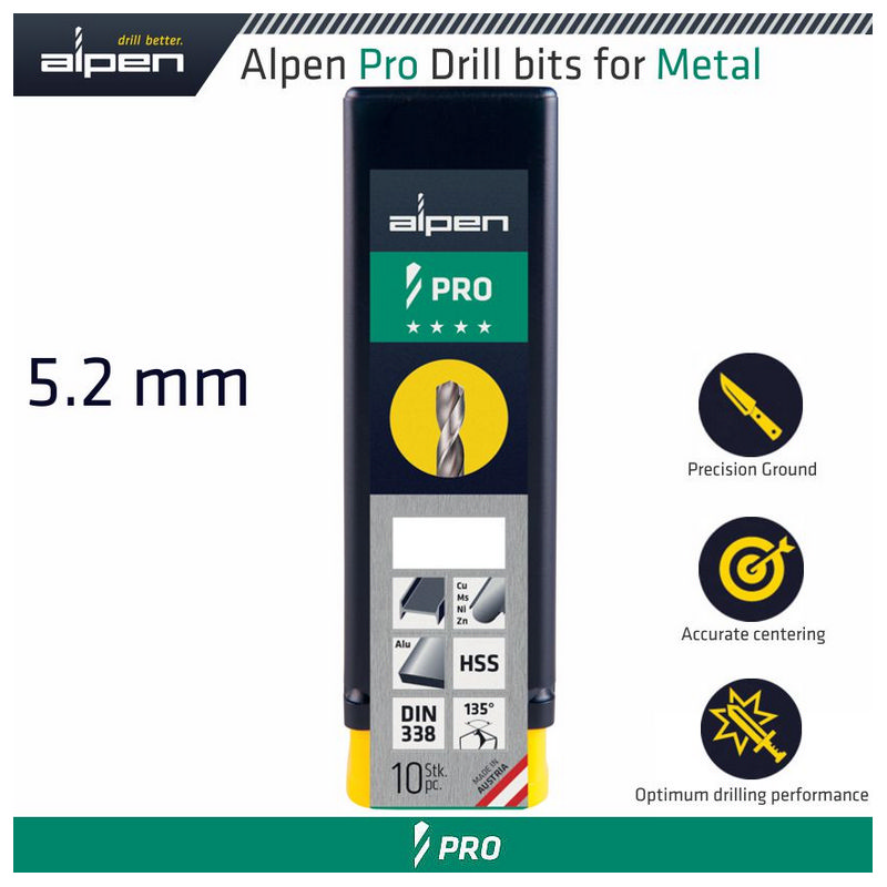 Alpen Pro 5.2mm HSS Drill Din 338 Rn 135 With Split Point