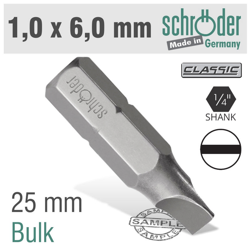 Schroder Slotted Bit 1.0x6.0 25mm Bulk