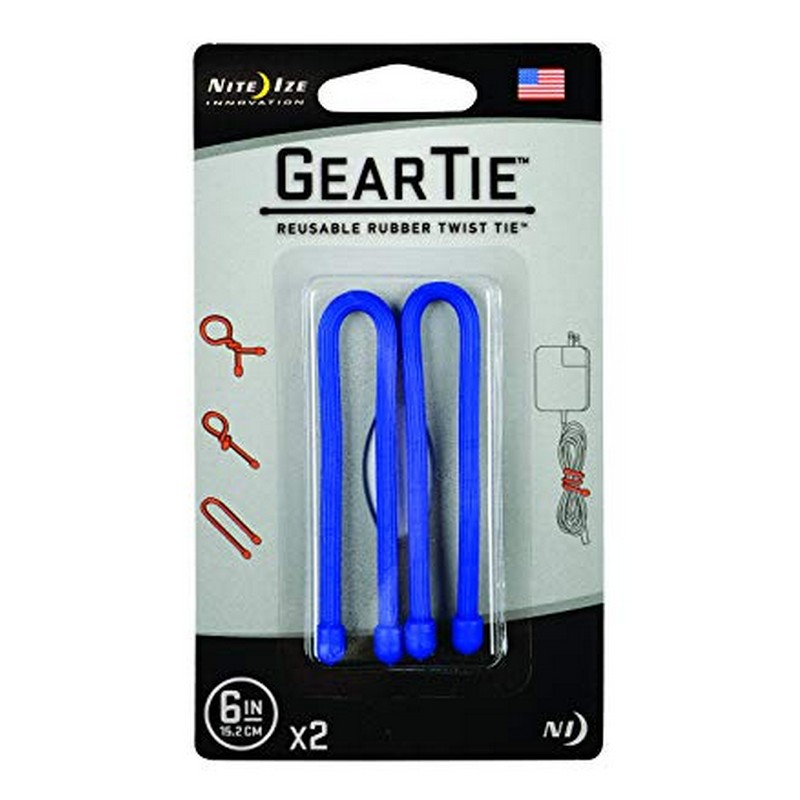 Whatever way you bend, wrap, or twist it, the nite ize 6" gear tie is almost endlessly useful, in a colorful, practical, innovative way. 2 pack size: 6" color: blue waterproof and safe for use in fresh or salt water without damage uv resistant - will not be damaged or destroyed by extended sun exposure tough rubber shell provides excellent grip use indoors and outdoors in any weather. Strong wire inside holds its shape won't scratch or mark twist it, tie it, reuse it thousands of uses! Use gear ties in the garage, on the boat, in the home, and in countless other places where things need to be secured and organized. Dimensions: 6.00" x 0.25" x 0.25" (152.40mm x 6.40mm x 6.40mm)