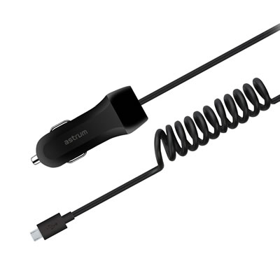 Astrum Spring Micro USB Car Charger 2.1A - CC240 Black