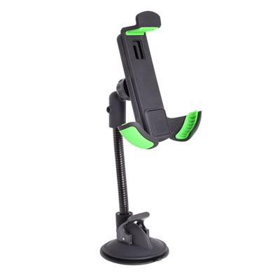 Versatile car mount for smart phones and other devices holds devices in place while driving, 360 degree rotation & suction cup bottom. Features Smart holder with special rubber grip to hold devices in place Triangle design with 360 degree rotation fits to any angle Suction cup mechanism locks holder to surfaces for grip Easy attachment to Windsheild or Dashboard of cars Heat resistant can withstand upto 60 degree temperature Universal holder for 3.5 - 6.3 inch smart phones & GPS devices Flexible metal neck for perfect view and angle Product SKU: A53552-B Material: Rubber + Plastic Rotation: 360