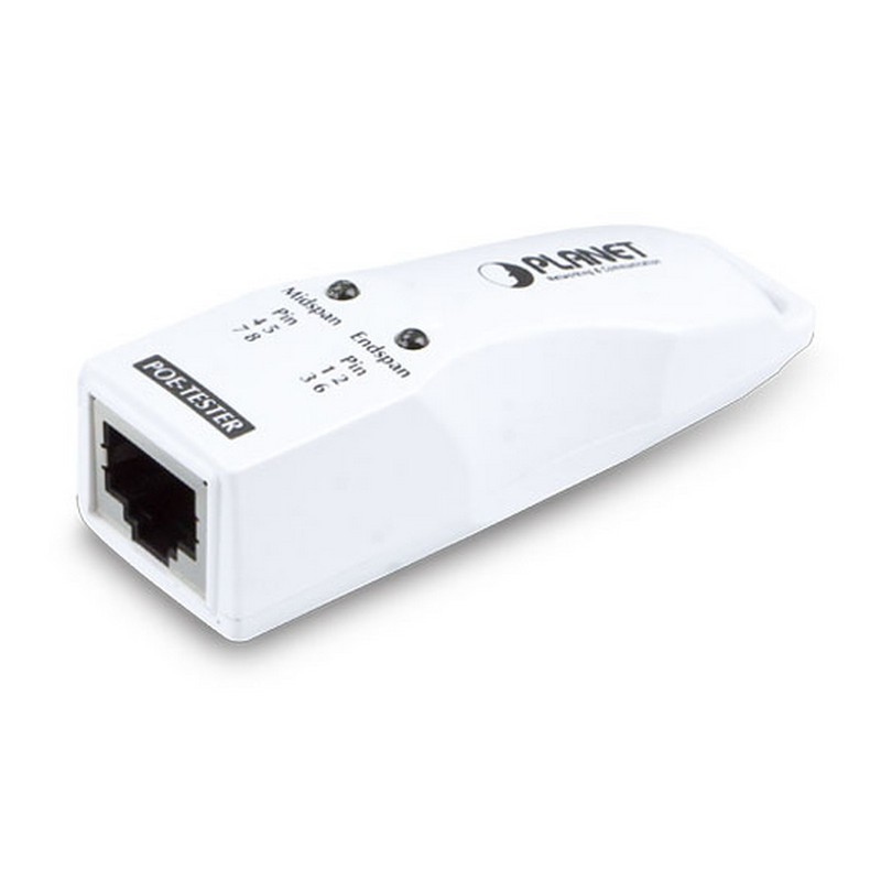 PLANET POE-TESTER is an easy-to-use PoE diagnostic adapter for network installers, company MIS and even home users to quickly identify the existence of Power over Ethernet on applications network. It is designed to detect if the IEEE 802.3af/at PoE voltage runs over the UTP cable and identify the type of PSE (Power Source Equipment) for troubleshooting.