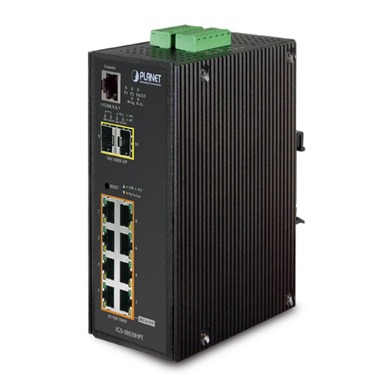 Planet IP30 L2/L4 SNMP Manageable 8-Port Gigabit POE+(AT) Switch + 2-Port Gigabit SFP Industrial Switch (-40 to 75 C)