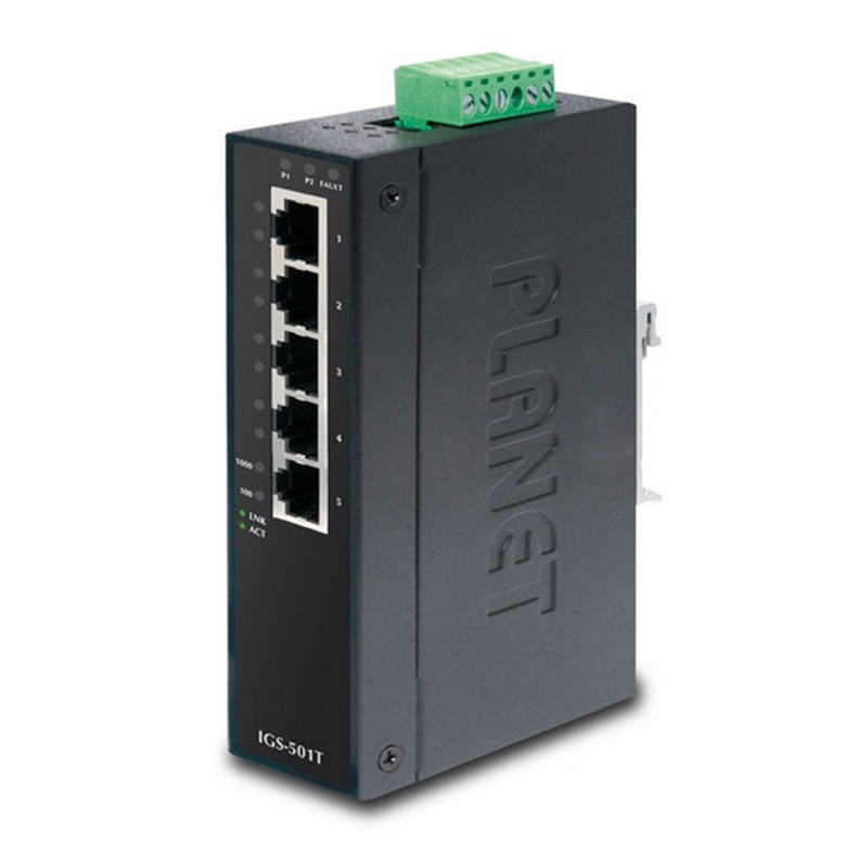 Planet IP30 Slim type 5-Port Industrial Gigabit Ethernet Switch (-40 to 75 degree C)