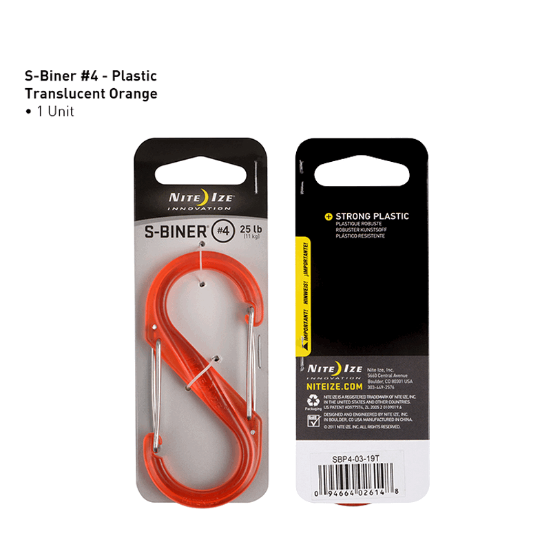 Nite Ize S-Biner Plastic Double Gated Carabiner #4 Orange - (SBP4-03-19T) Product Info