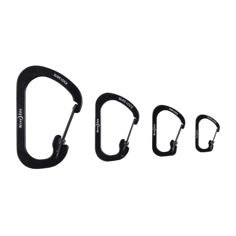 At Nite Ize, we believe no product is too small or basic to be improved. Exhibit A: the classic utility carabiner. We took a hard look at this ubiquitous device and saw two good opportunities to make it more efficient. We designed an innovative slide-to-lock feature that securely locks the gate with a simple push and slide movement, and unlocks when you want it to just as easily. Then, instead of a bulky tubular construction, we designed a cross sectioned, rectangular stainless steel body that's durable, low profile, and slim; it feeds more easily through smaller openings and rests flat in pockets. Available in four sizes: #6 (to tackle the largest items), #4 (perfect for attaching to a belt loop or backpack to carry larger items), #3, and #2 (for carrying smaller items like keys, and attaching to zipper pulls).