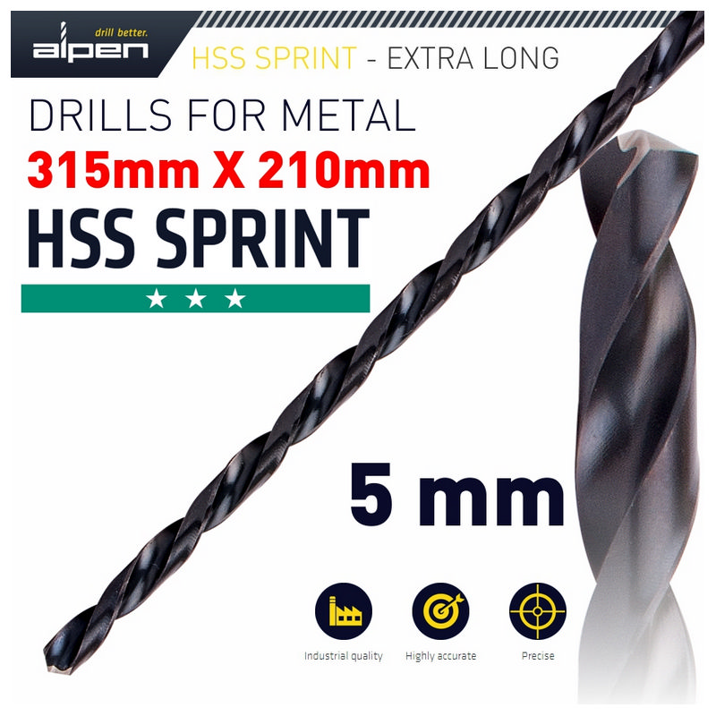 Alpen HSS Drill Bit 5mm 315x210mm Extra Long