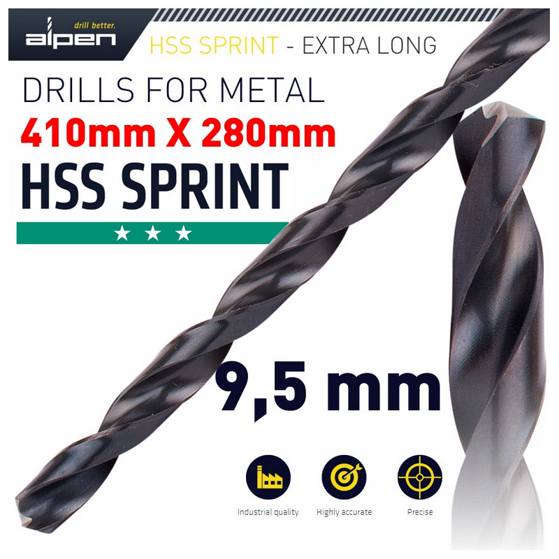 Alpen HSS Drill Bit 9.5mm 410x280mm Extra Long