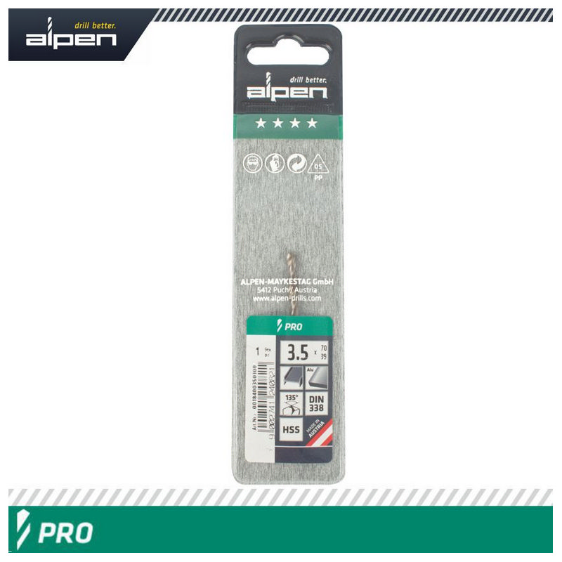 Alpen Pro HSS 3.5mm Drill Din 338 Rn 135 Split Point Plastic Wallet
