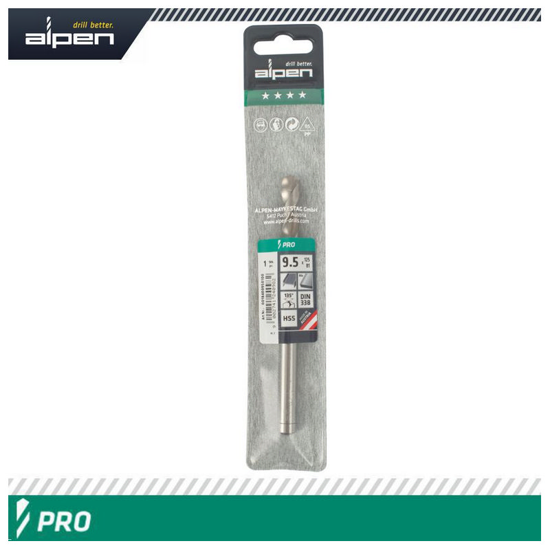Alpen Pro HSS 9.5mm Drill Din 338 Rn 135 Split Point Plastic Wallet