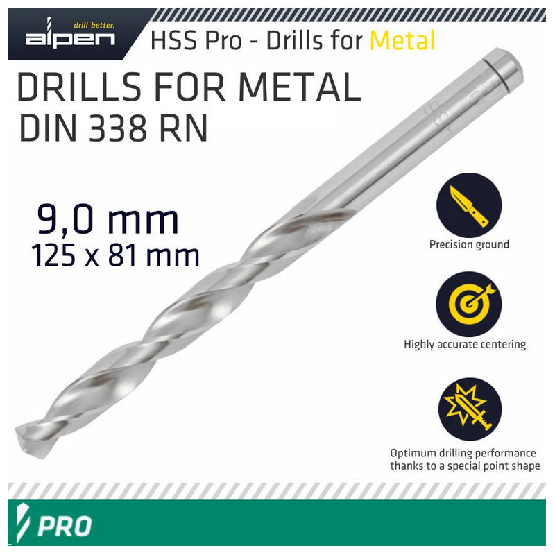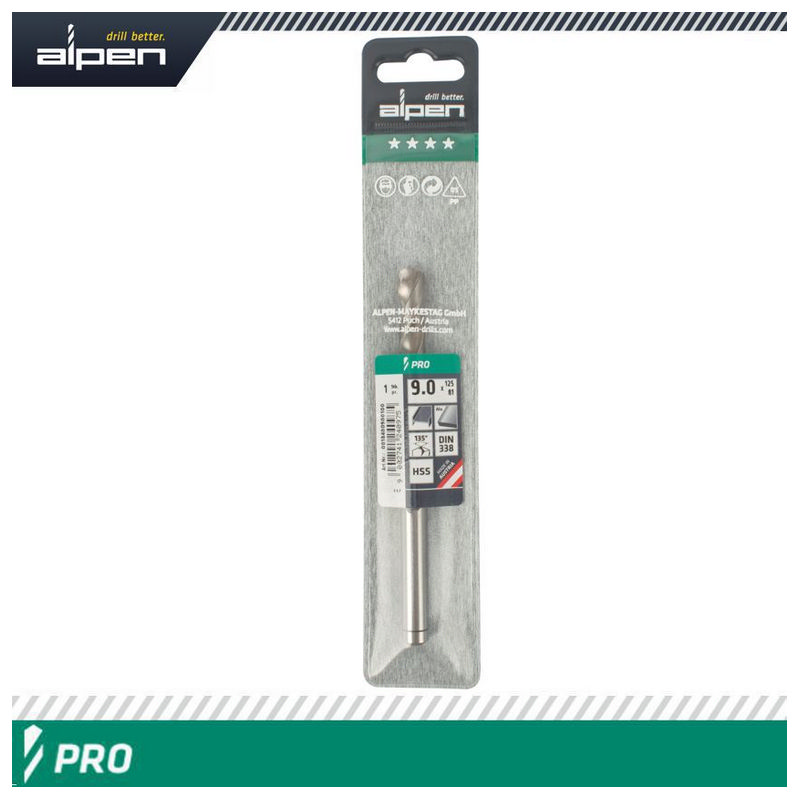 Alpen Pro HSS 9mm Drill Din 338 Rn 135 Split Point Plastic Wallet
