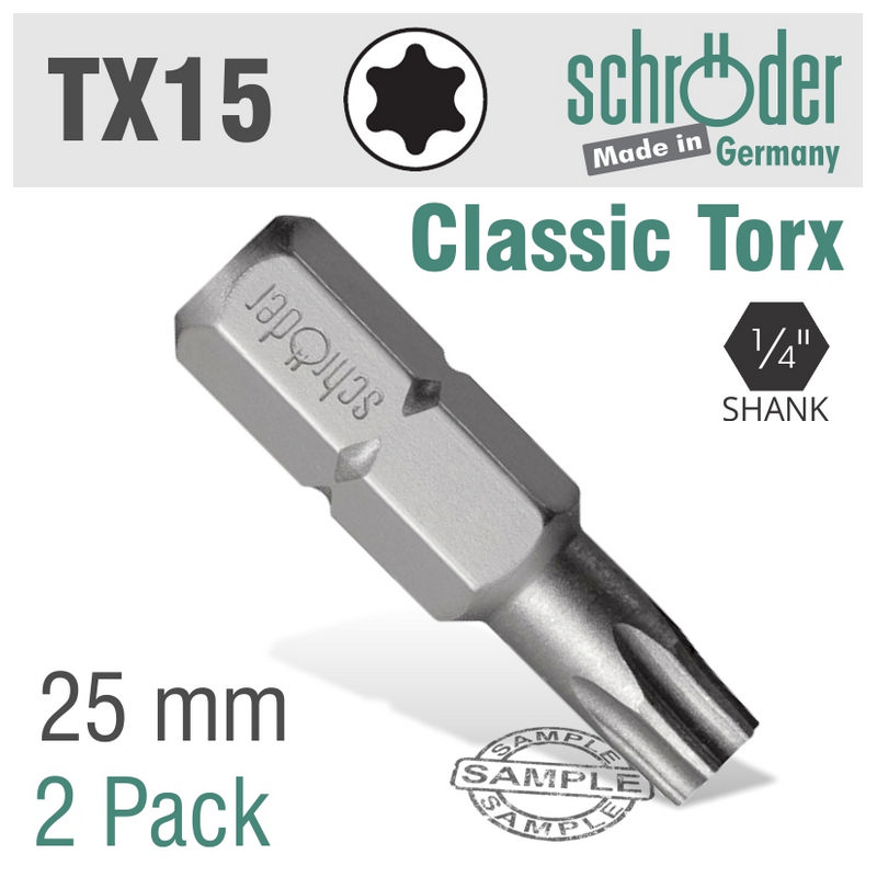 Schroder Torx Tx15 Classic Bit 25mm 2cd