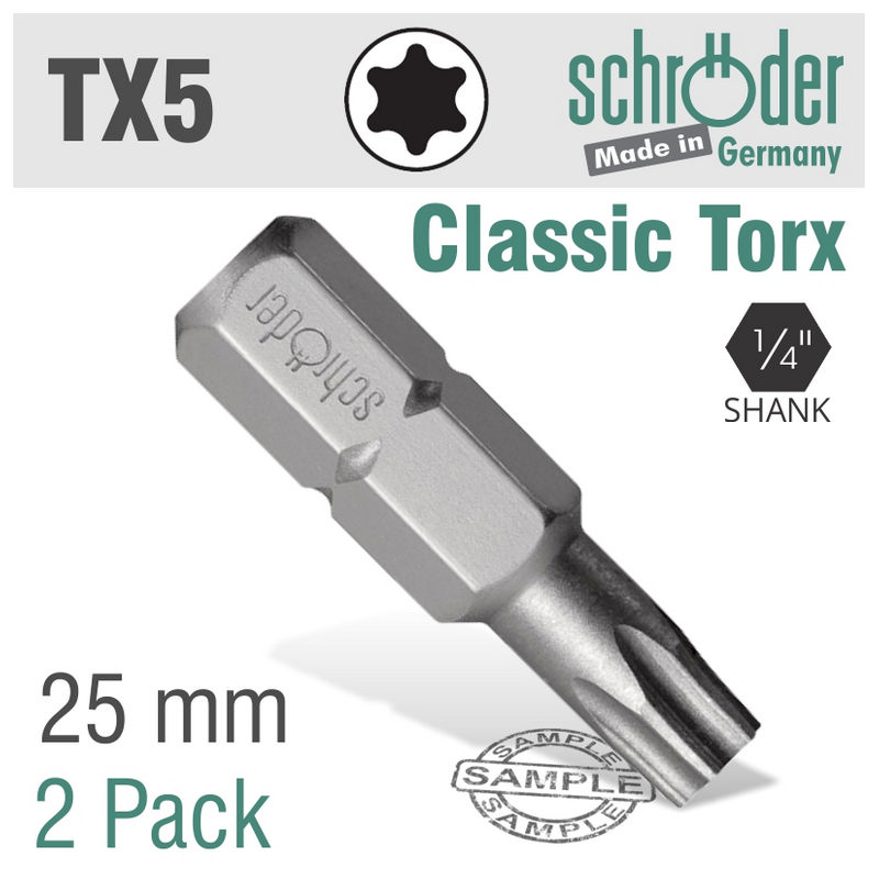 Schroder Torx Tx5 Classic Bit 25mm 2cd