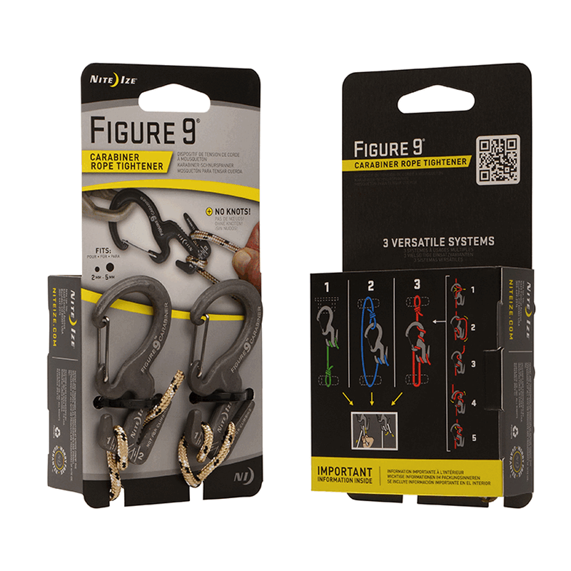 • Nite Ize Figure 9 Carabiner Rope Tightener - Small - Smalll 2 Pck W/Rope - Black (C9S-03-TP01)