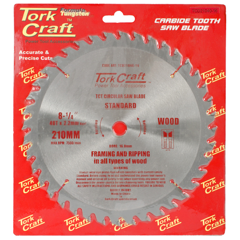 Tork Craft Blade Tct 210 X 40t 16mm General Purpose Combination