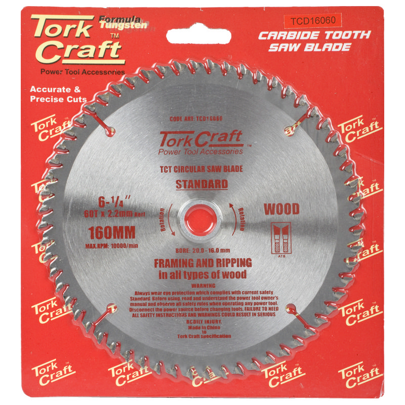 Tork Craft Blade Tct 160 X 60t 20/16 General Purpose Cross Cut