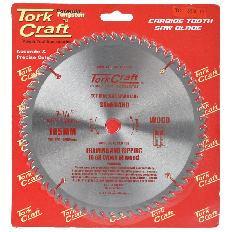 Tork Craft Blade Tct 185 X 60t 16mm General Purpose Cross Cut