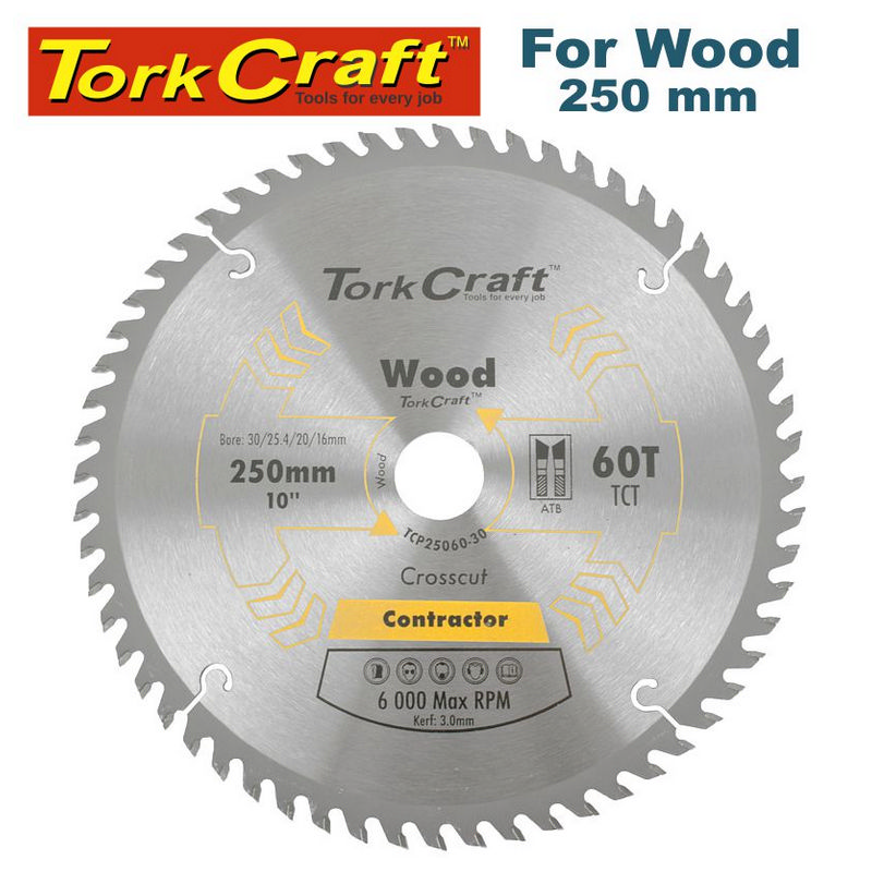 Tork Craft Blade Contractor 250 X 60t 30/20/16 Circular Saw Tct