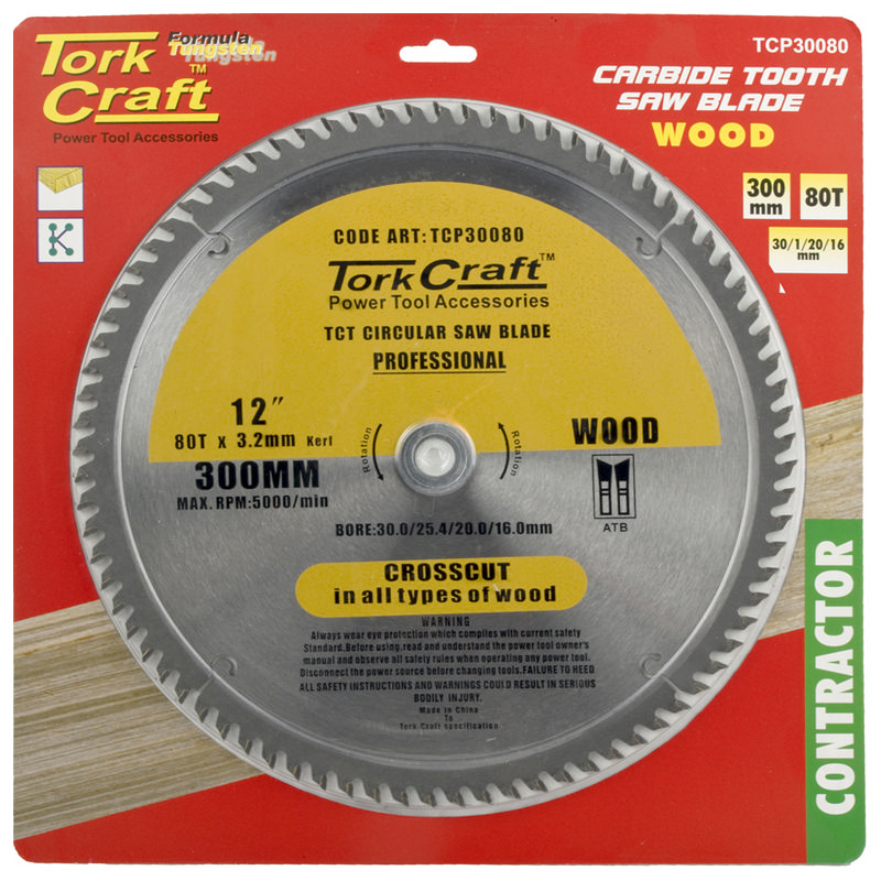 Tork Craft Blade Contractor 300 X 80t 30/1/20/16 Circular Saw Tct