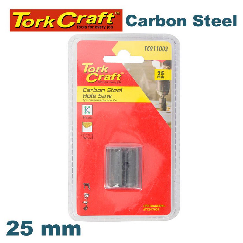 The carbon steel hole saw is covered with a black oxide finish to prevent rust. Holes can be quickly and efficiently drilled in wood, composite materials and plastic.
