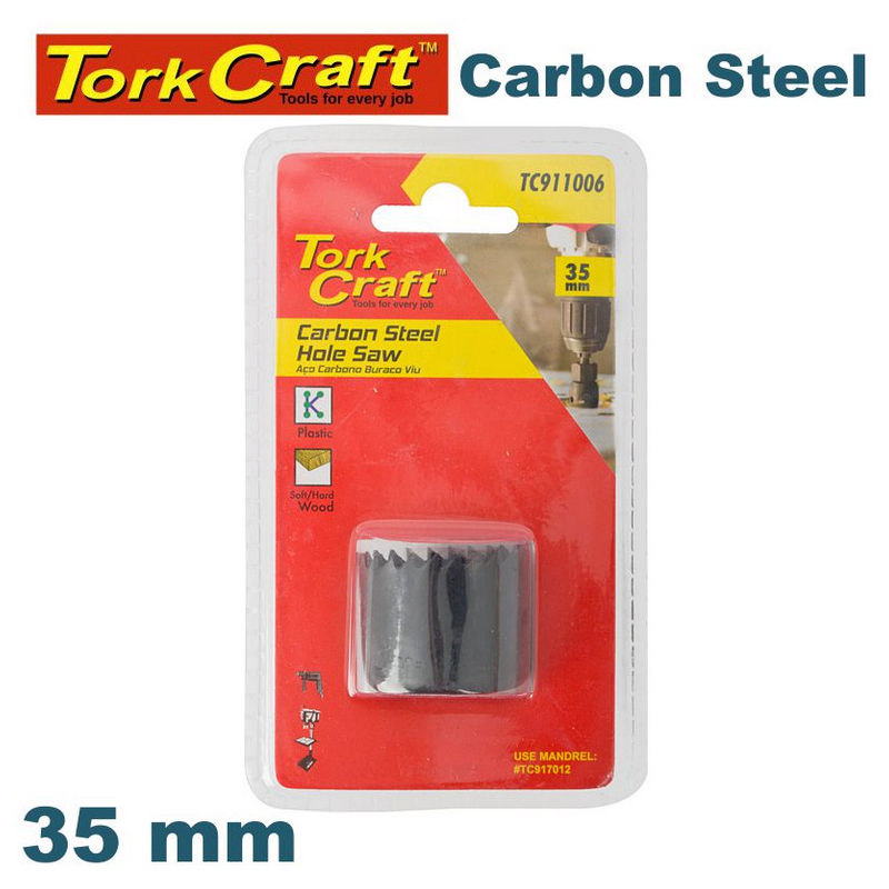 The carbon steel hole saw is covered with a black oxide finish to prevent rust. Holes can be quickly and efficiently drilled in wood, composite materials and plastic.