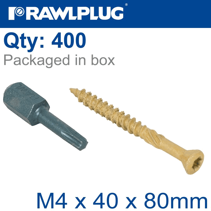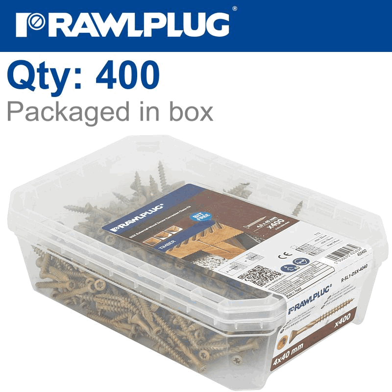 RAWLPLUG R-Dsx Screws M4 X 40X24 Ginger Ruspert X400-Tub