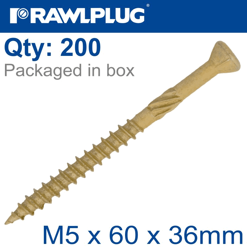 RAWLPLUG R-Dsx Screws M5 X 60X36 Ginger Ruspert X200-Tub