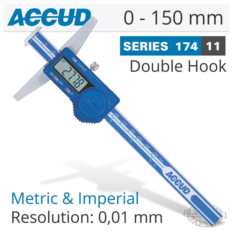 Accud Digital Double Hook Depth Gauge 0-150mm/0-6"