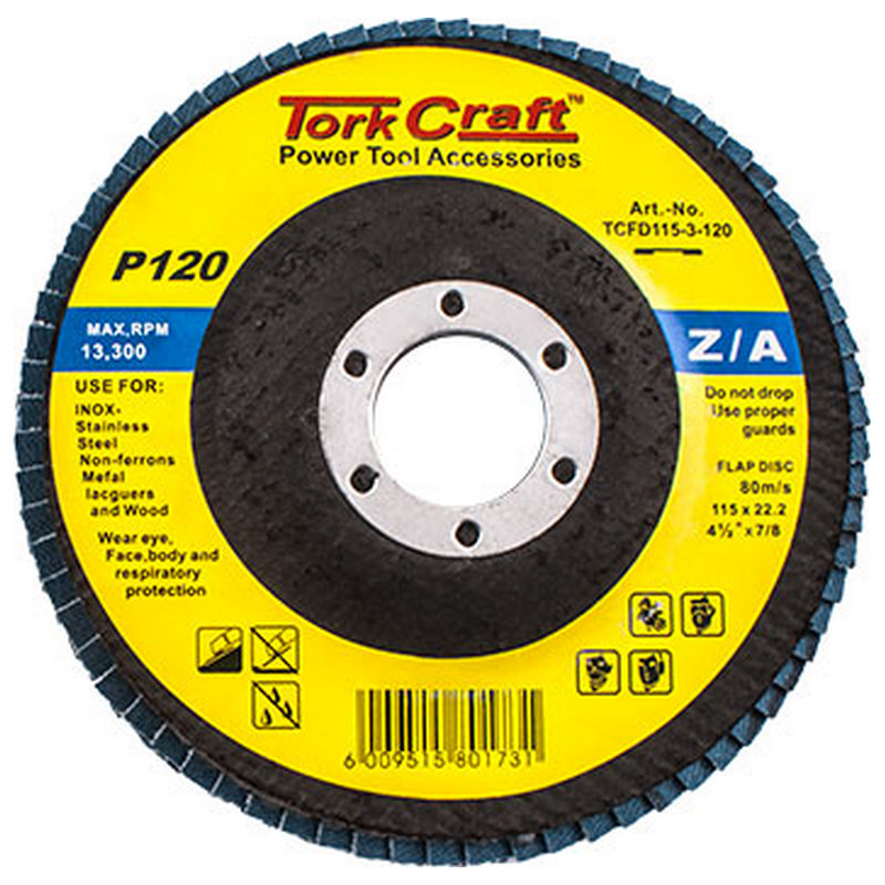 Tork Craft Flap Disc Zirconium 115mm 120 Grit Flat