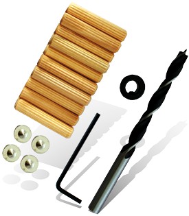 The doweling accessory set includes everything needed to conveniently join with dowels.