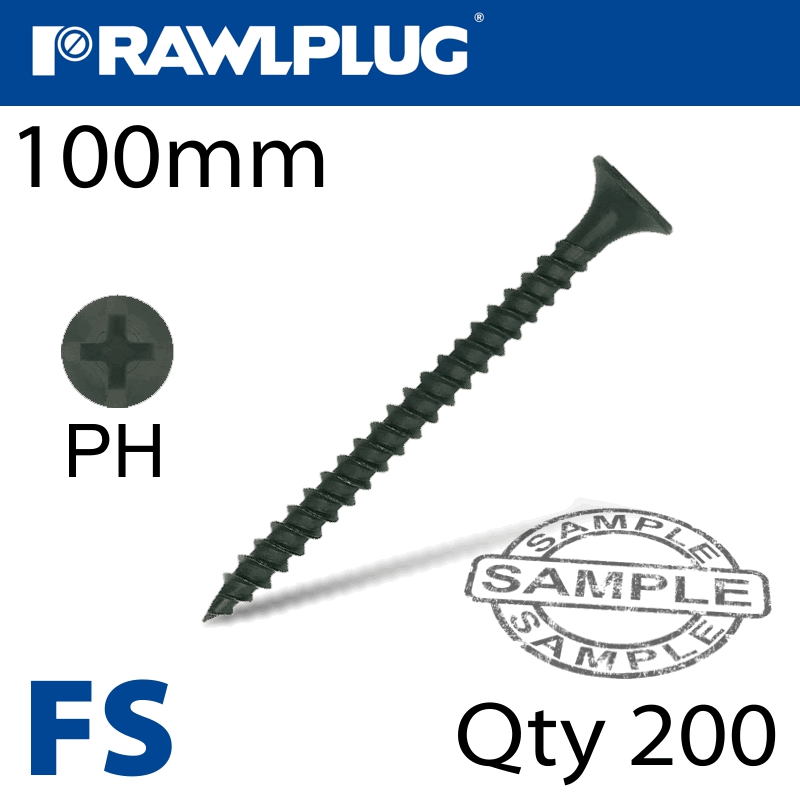 RAWLPLUG Drywall Screw Fine Thread 4.8Mmx100Mm X200-Box