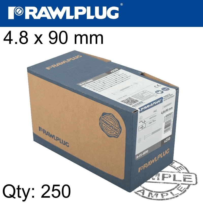 RAWLPLUG Drywall Screw Fine Thread 4.8Mmx90Mm X250-Box