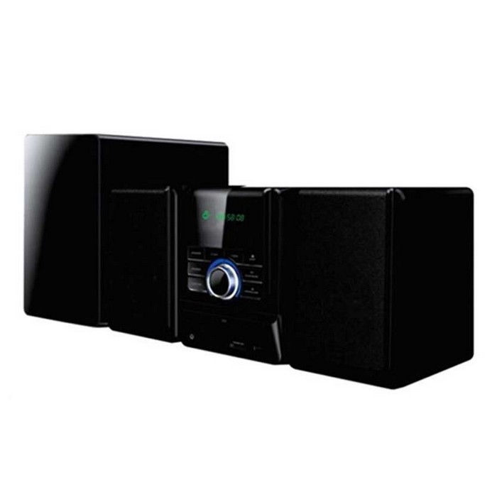 The Telefunken TMD-838HDMI Micro DVD Hi-Fi System is a compact micro DVD hifi system with a stylish modern design. It features two freestanding speakers which provide 20w RMS. It is compatible with DVD, CD, VCD, MP3, MPEG4, JPEG, CD-R+RW, DVD-R+RW, DTS and Kodak picture. It further offers a built-in FM radio and bluetooth functionality. It comes complete with a USB port, SD card reader and HDMI master bass treble volume control.