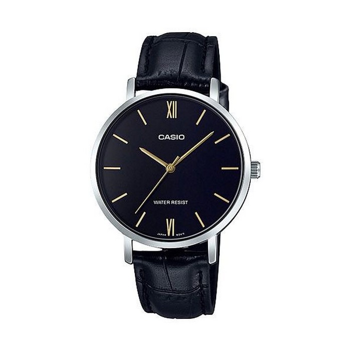 Casio Analog Round Case Leather Watch - Black Product Info