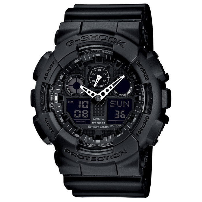 The popular G-SHOCK three-dial face design incorporates one analog dial in the center, with digital dials on either side. These watches are designed and engineered to deliver outstanding shock resistance and water resistance, as well as anti-magnetism. Over-sized buttons come with a checkered anti-slip surface to make operations fast and sure.