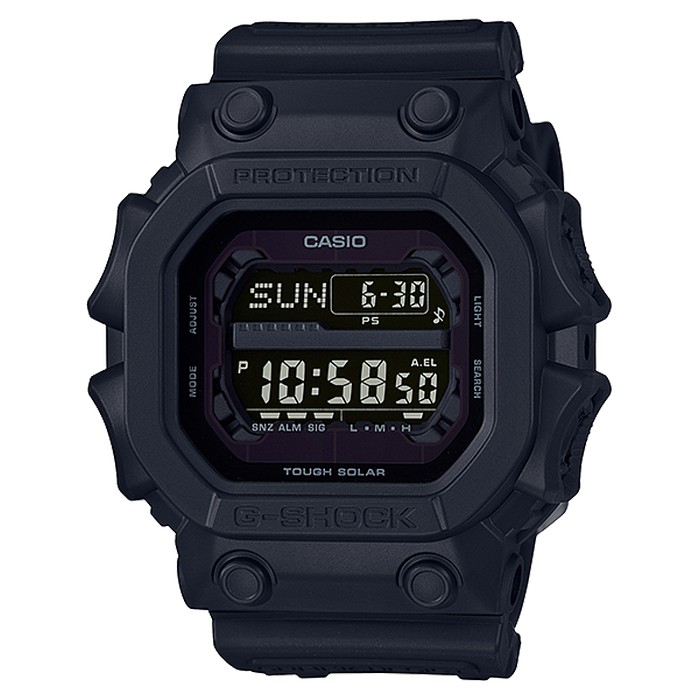 From G-SHOCK, the watch that sets the standard for timekeeping toughness, comes the latest models to feature basic G-SHOCK black that captures the essence of one-tone resin. This model is based on the GX-56, which is designed to withstand impact from any direction. A simple matte black finish allows the form of the watch itself to come out, while the buckle have a black ion plate finish. Everything about this new basic black model capture the very essence of the rough, tough basic G-SHOCK image.